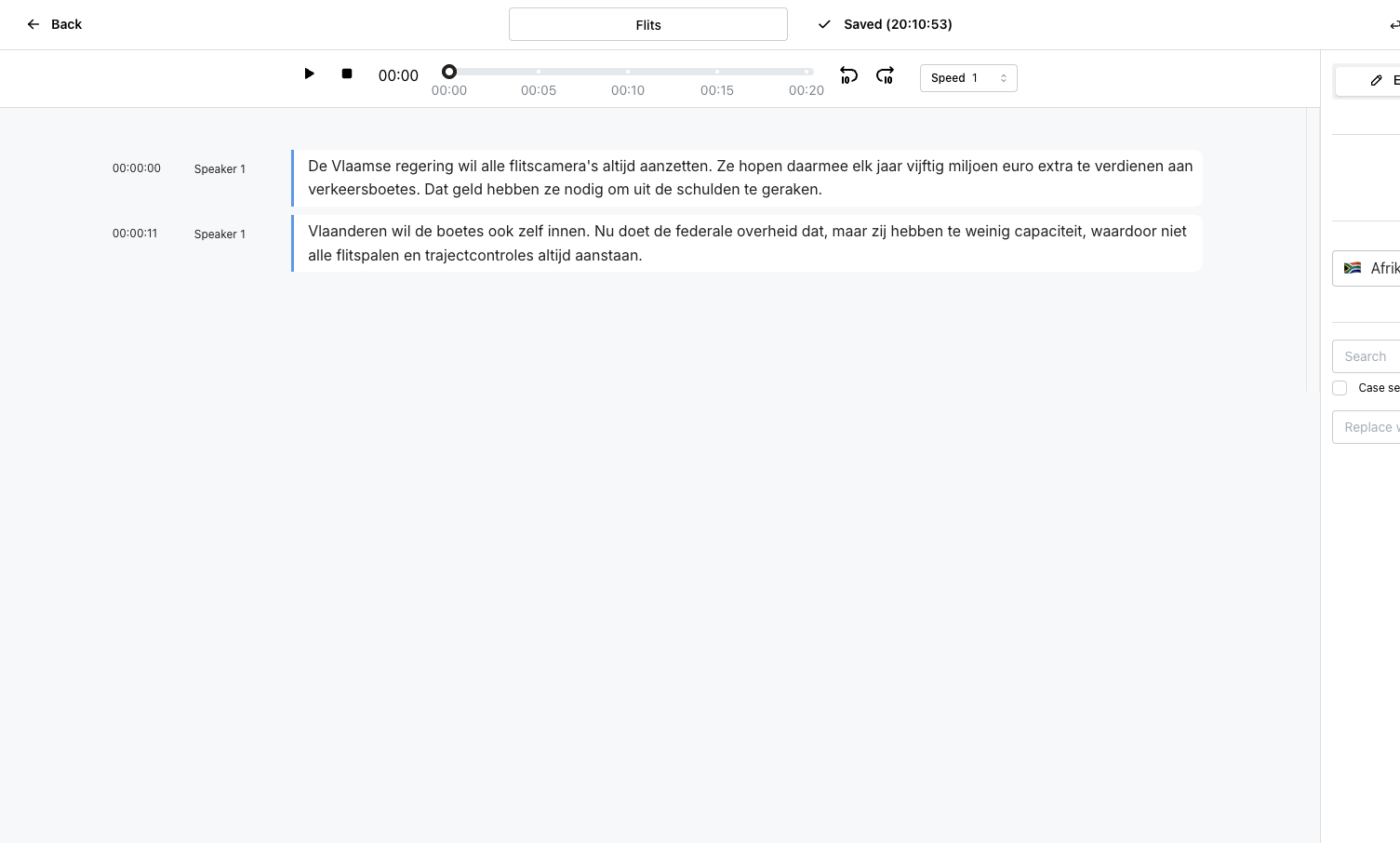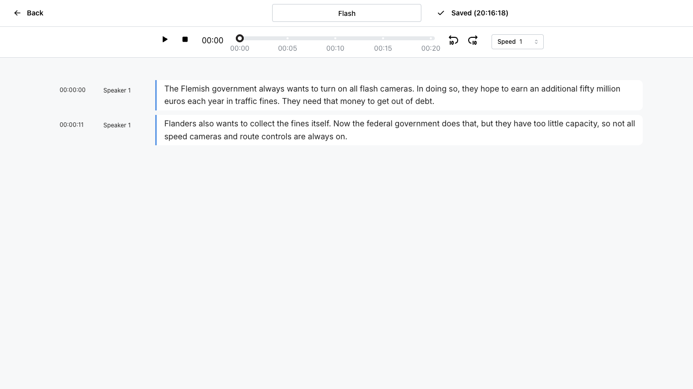Votre fichier sera transcrit en quelques secondes. Une fois prêt, vous pouvez vérifier le texte, apporter des modifications et cliquer sur n'importe quel mot pour accéder à ce moment précis de l'enregistrement audio.