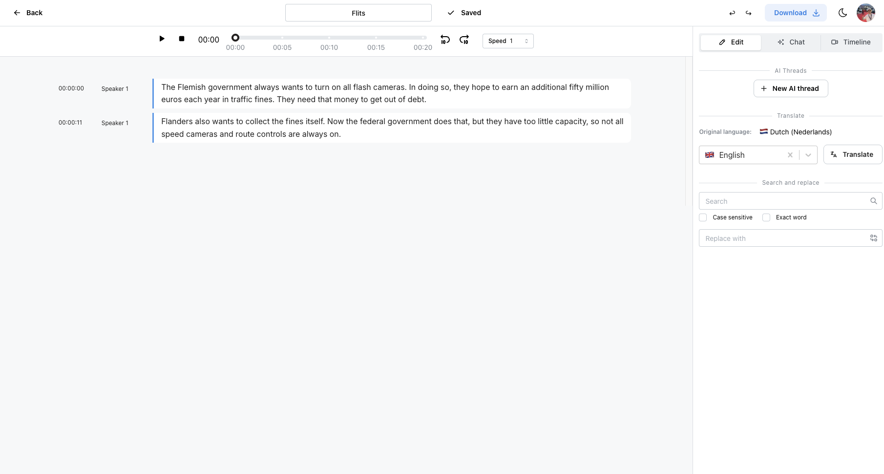 Même après la traduction, toutes les informations de timing sont préservées. Vous pouvez cliquer sur n'importe quel mot traduit, et l'audio sautera au code temporel correspondant, gardant tout parfaitement synchronisé.